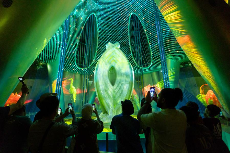 126층에 위치한 톈스(天時∙SKY632) 예술 공간의 정중앙에는 중국이 자체 개발한 무게 1천t(톤)에 달하는 와전류 동조질량감쇠기가 설치돼 있다. 감쇠기는 진동을 효과적으로 줄여 건물의 편안함과 안정성을 높여준다. 감쇠기 위쪽으로는 '상하이 혜안(慧眼)'이라 불리는 눈 모양을 닮은 조각상이 있는데, 이는 중국의 대표 신화집 '산해경(山海經)'에서 영감을 얻은 것이다. 이곳에서는 중국풍의 멋진 조명쇼가 펼쳐진다.