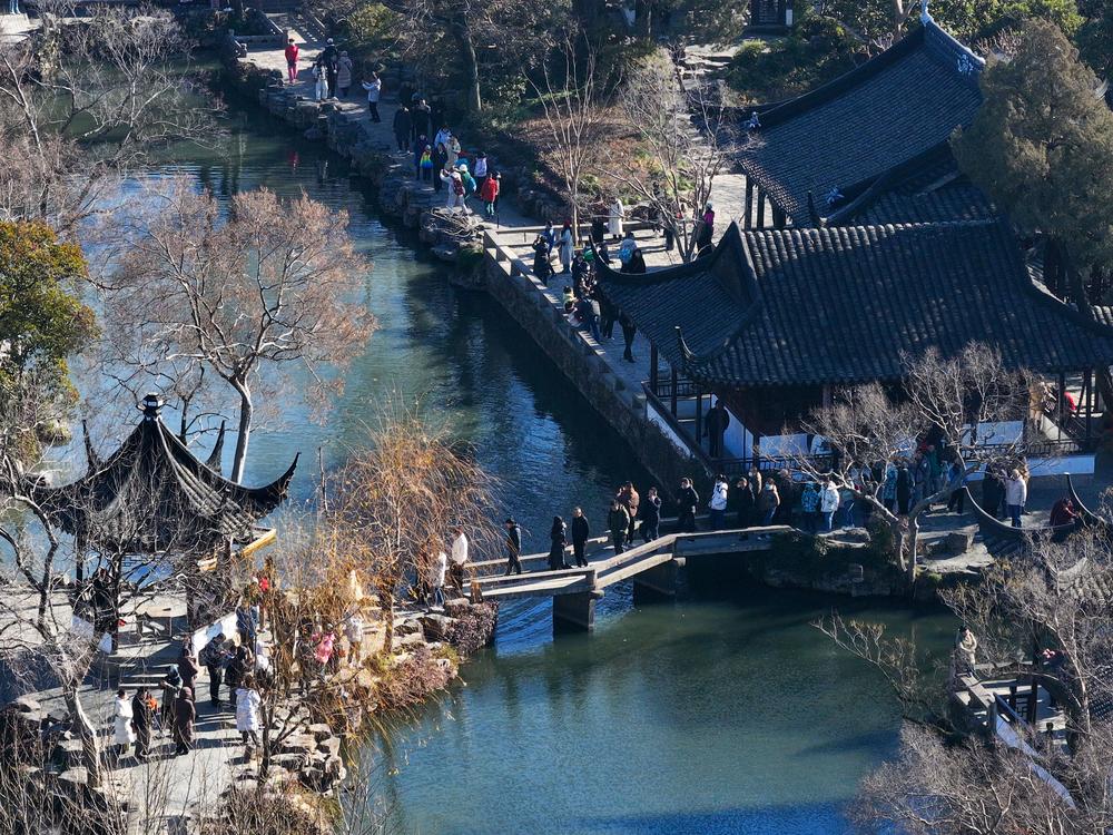 관광객들로 북적이는 쑤저우 졸정원을 9일 드론으로 내려다봤다. 2025.1.9