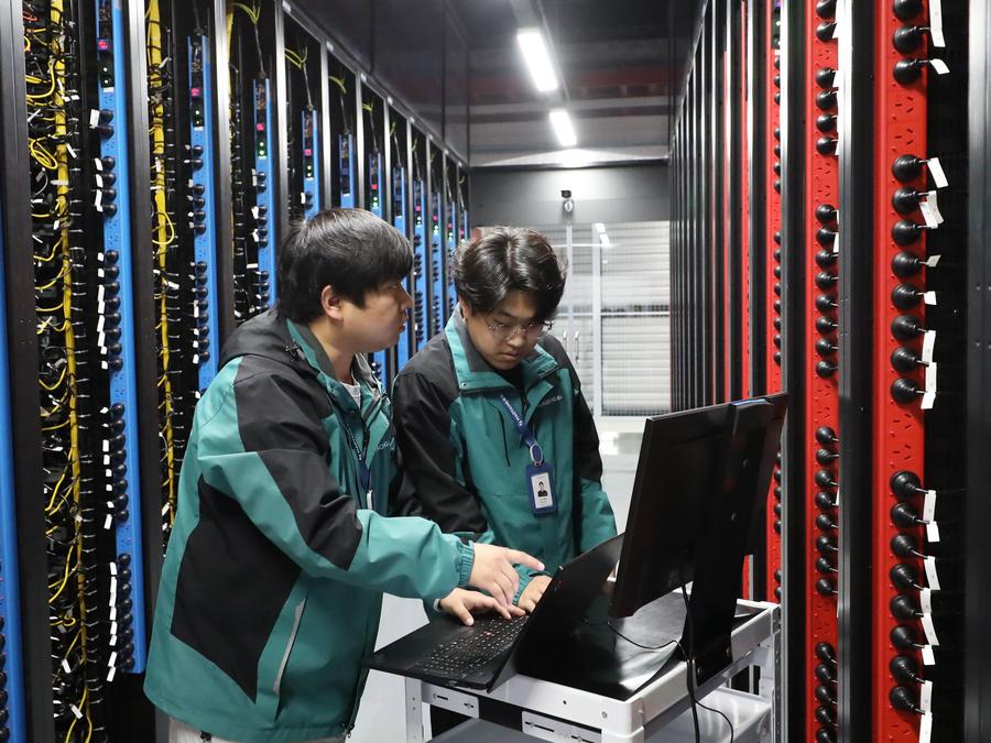 랑팡경제기술개발구에 위치한 허베이AI컴퓨팅센터 내부. 나란히 늘어선 데이터센터 캐비닛에서 초당 1페타플롭스(PFlops)의 데이터가 끊임없이 쏟아져 나온다.