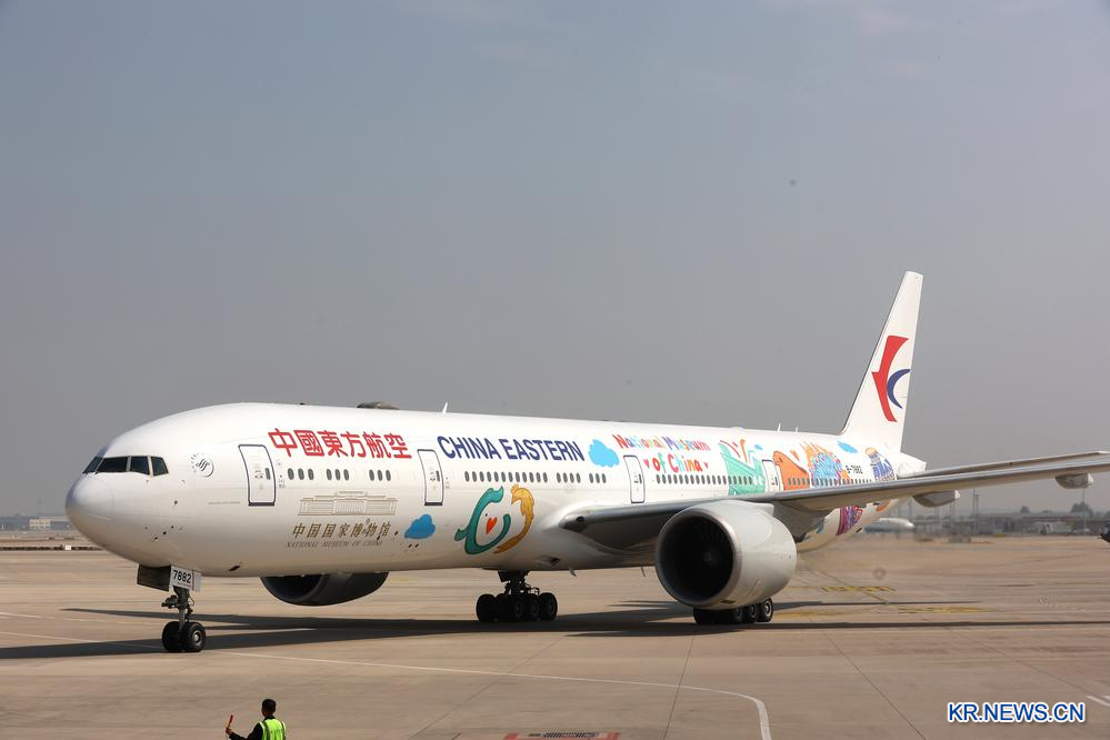 [신화망 베이징 9월30일] 중국국가박물관과 중국동방항공이 공동으로 선보인 '궈보(國博)호' 테마 항공기가 29일 베이징 다싱(大興)국제공항에서 취항해 상하이 푸둥(浦東)으로 향한다. '궈보호'는 국내 노선은 물론 유럽·미국·호주 등 주요 노선과 '일대일로' 국제 노선에도 순차적으로 투입될 예정이다.