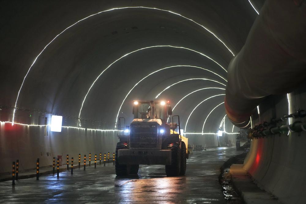 (베이징=신화통신) 29일 베이징 108신선(新線,신규노선)고속도로 팡산(房山)구간 헤이룽관(黑龍關)터널 시공 현장.