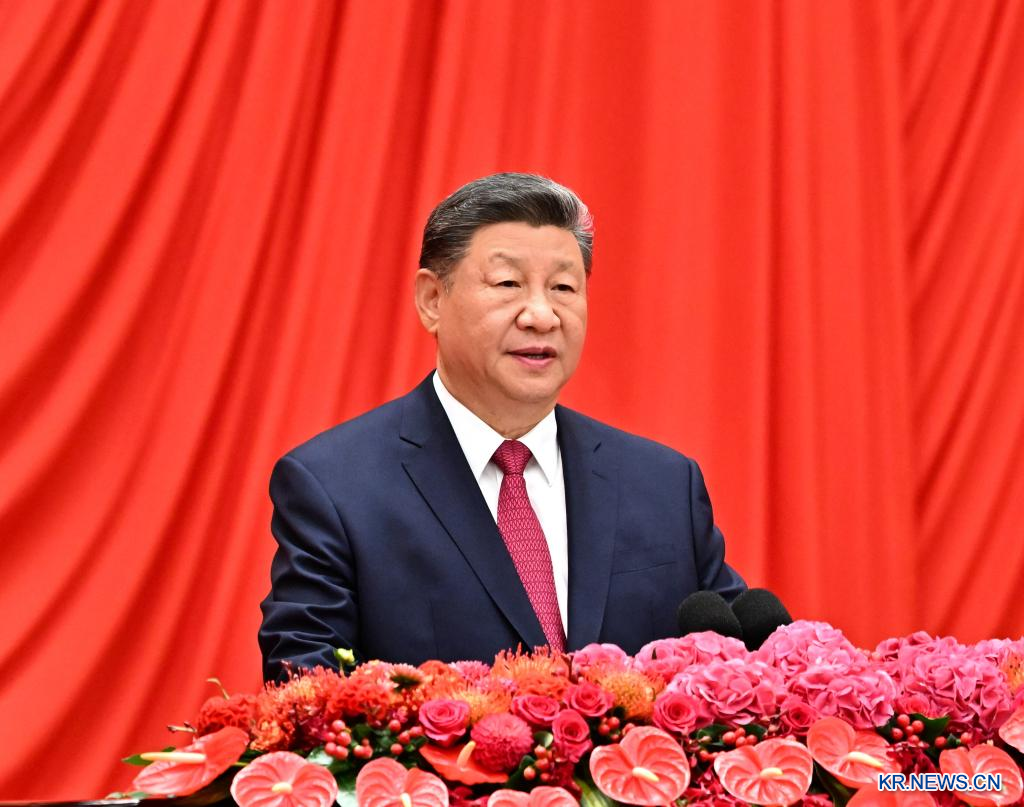 [신화망 베이징 10월1일]중화인민공화국 건국 76주년 경축 리셉션이 30일 저녁 베이징 인민대회당에서 성황리에 열렸다. 시진핑(習近平) 중국 공산당 중앙위원회 총서기, 국가주석, 중앙군사위원회 주석이 리셉션에 참석해 중요 연설을 했다.[촬영/신화사 기자 옌옌(燕雁)]pagebreak