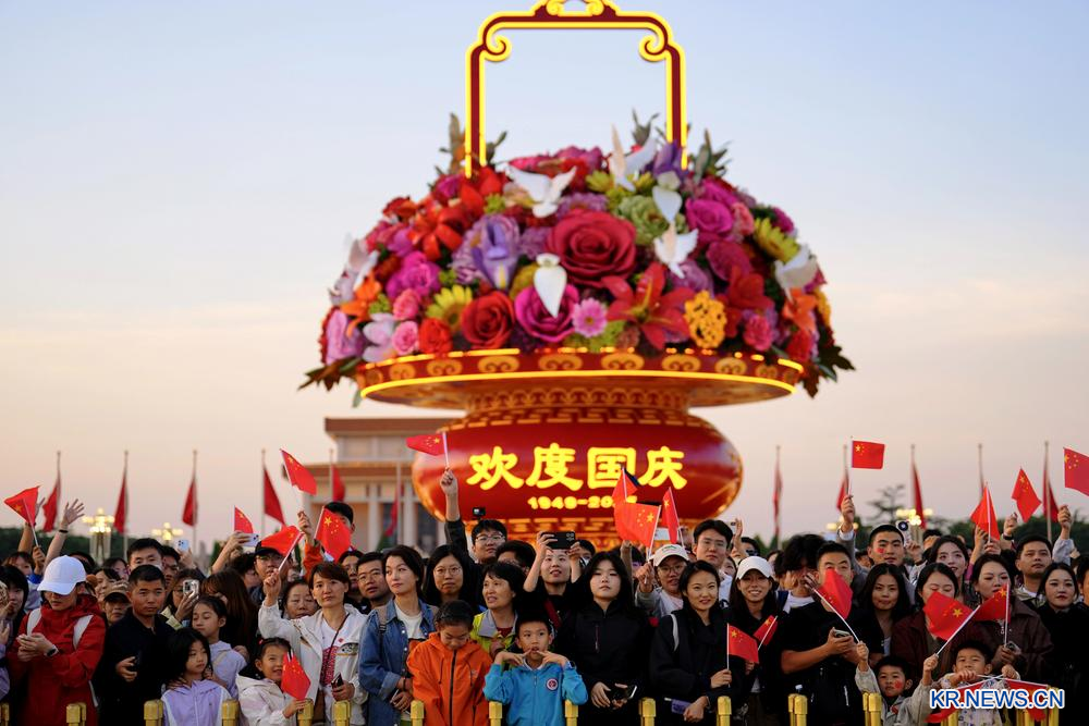중화인민공화국 수립 76주년을 경축하는 국기 게양식이 1일 아침 베이징 톈안먼(天安門) 광장에서 성대하게 열렸다.