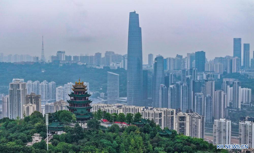 [신화망 충칭 10월4일] 3일 드론으로 내려다본 충칭(重慶) 후광(湖廣)회관과 주변 도시 풍경.