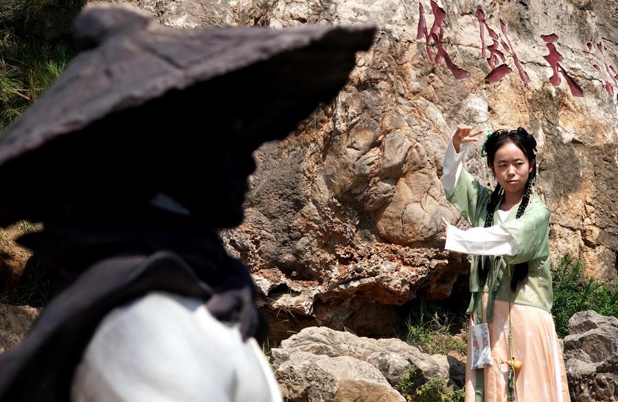 왕쉐잉(王雪瑩) 완쑤이산무협성 홍보담당자는 검객, 상인, 설서인(說書人) 등으로 분장한 100명 이상의 직원이 연휴 기간 방문객들과 소통하며 하루에 약 2천 회의 공연을 선보일 예정이라고 소개했다.