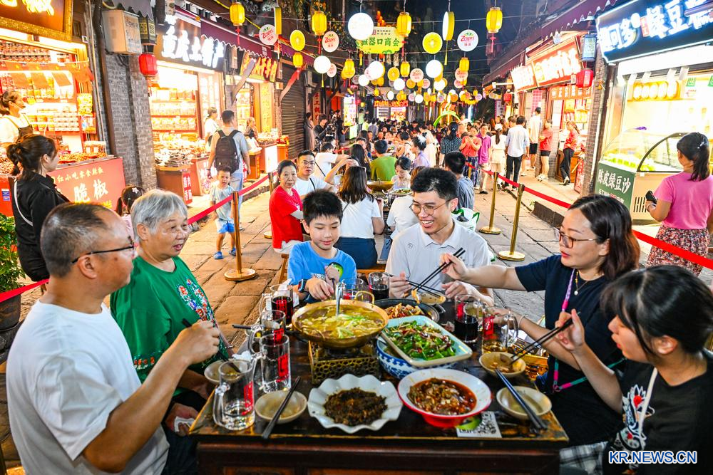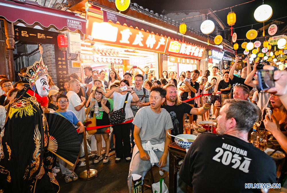 이날 충칭 츠치커우 고진에선 명절 잔치가 열렸다. 많은 관광객이 이곳에서 맛있는 음식과 민속공연을 즐기며 중추절을 만끽했다. 2025.10.5