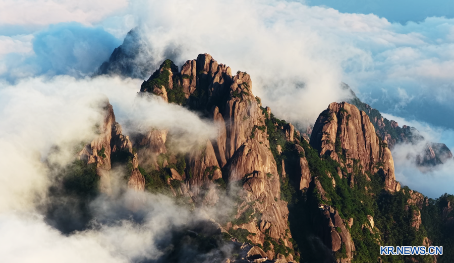 [신화망 베이징 10월9일] 최근 안후이 황산(黄山) 풍경구에 운해가 펼쳐지며 한 폭의 그림 같은 장관을 연출했다.