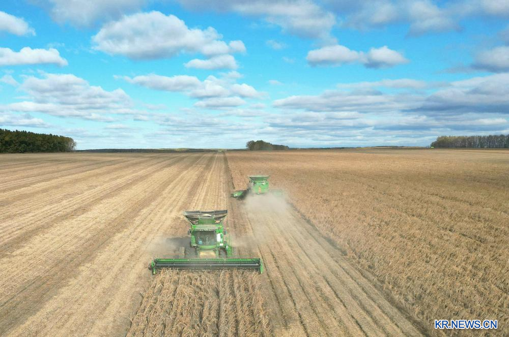 절기상 한로(寒露)를 맞아 헤이룽장성 들녘 곳곳에서 분주한 풍경이 연출됐다. 2025.10.8