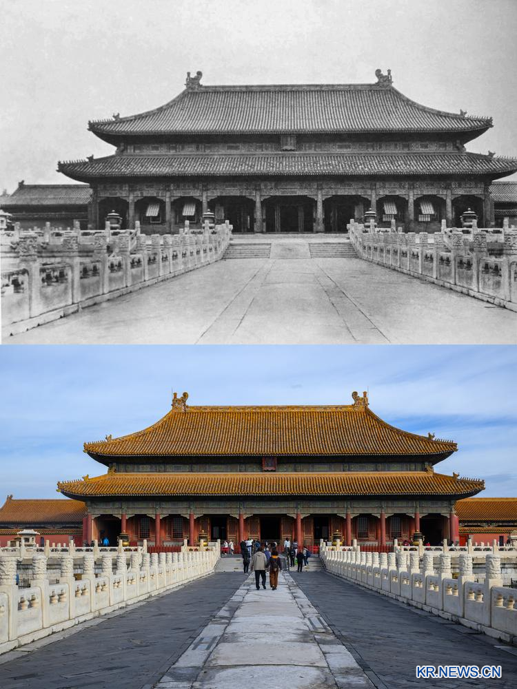 20세기 초(위 사진, 고궁박물원 제공)와 10일(아래 사진) 각각 촬영된 고궁 건청궁(乾清宮) 전경. 2025.10.10