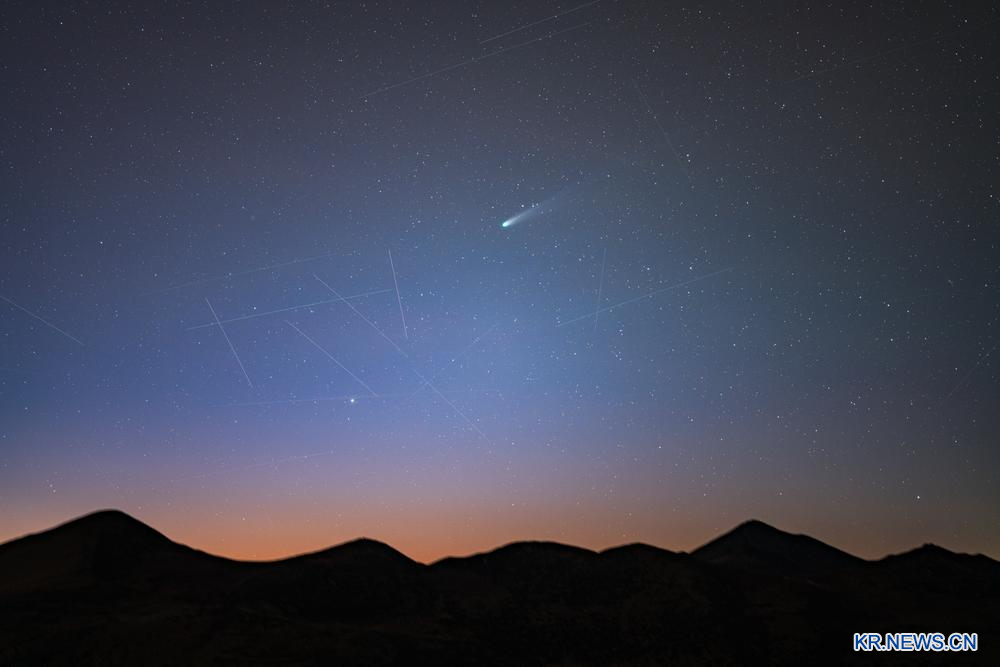 지난 19일 쓰촨(四川)성 다오청(稻城)현 우밍산(無名山)에서 포착한 레몬 혜성. 2025.10.21