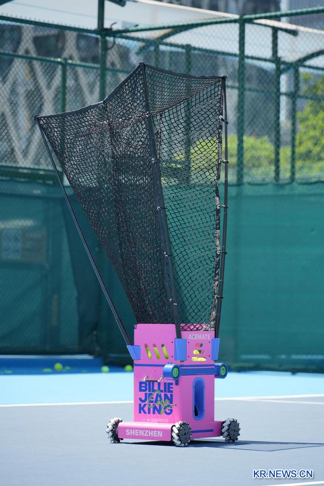 지난달 선전(深圳)에서 열린 빌리진킹컵 테니스 대회에서는 랠리가 가능한 테니스 로봇 '에이스메이트(Acemate)'가 공개됐다.