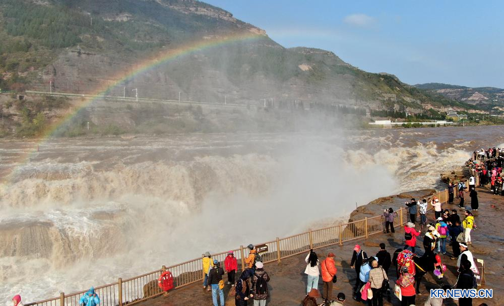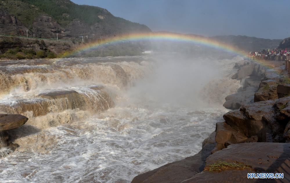 이날 지현 황허 후커우 폭포 관광지에서 포착한 무지개다리. 2025.10.27