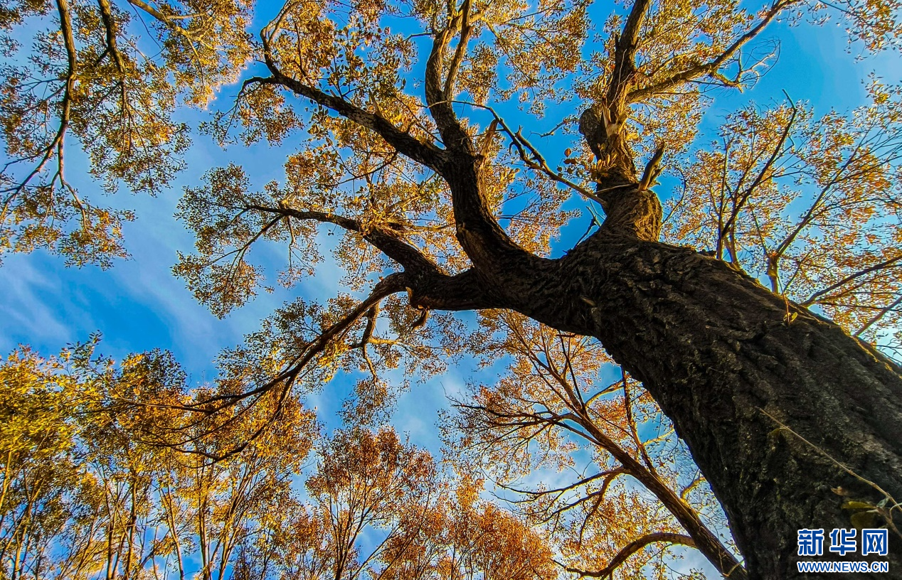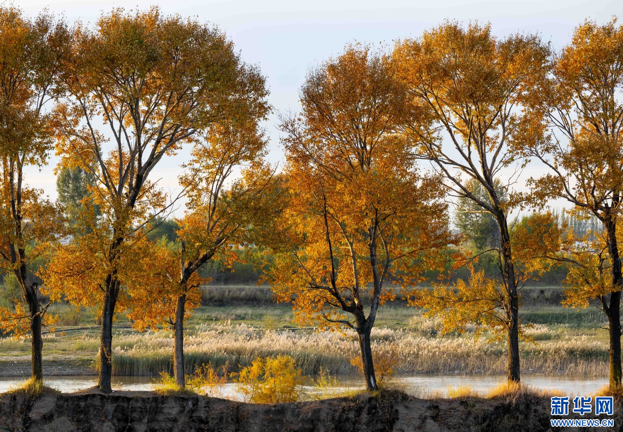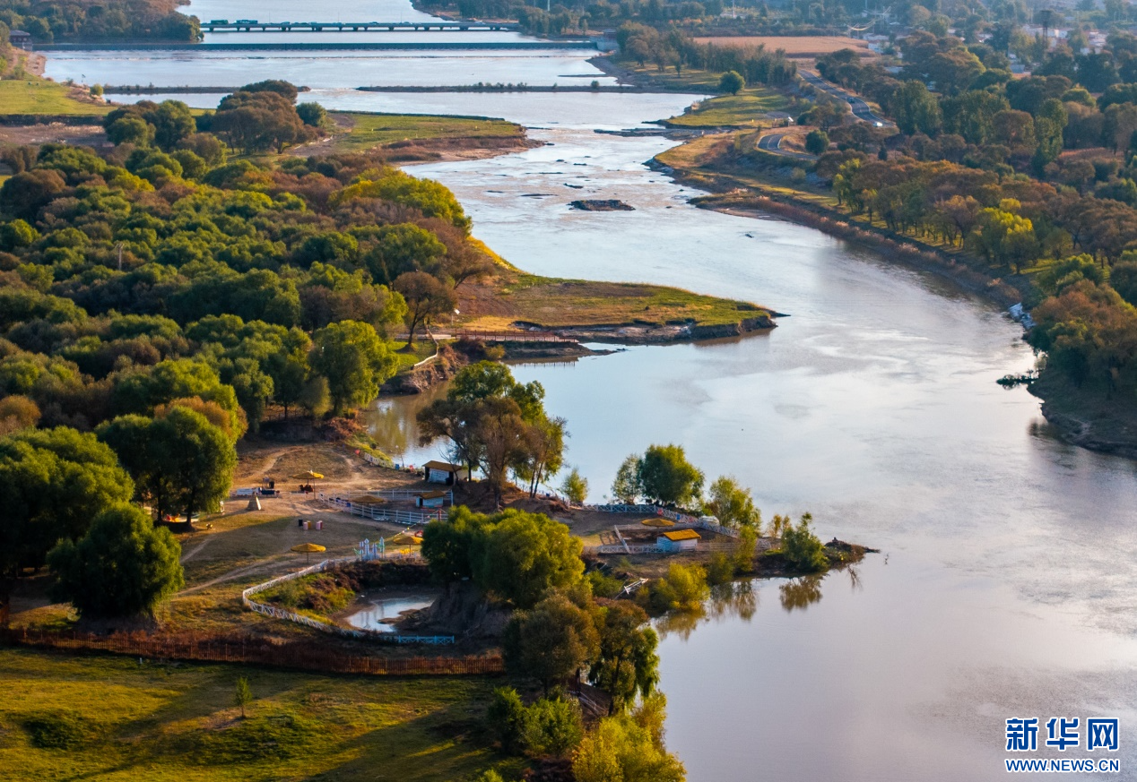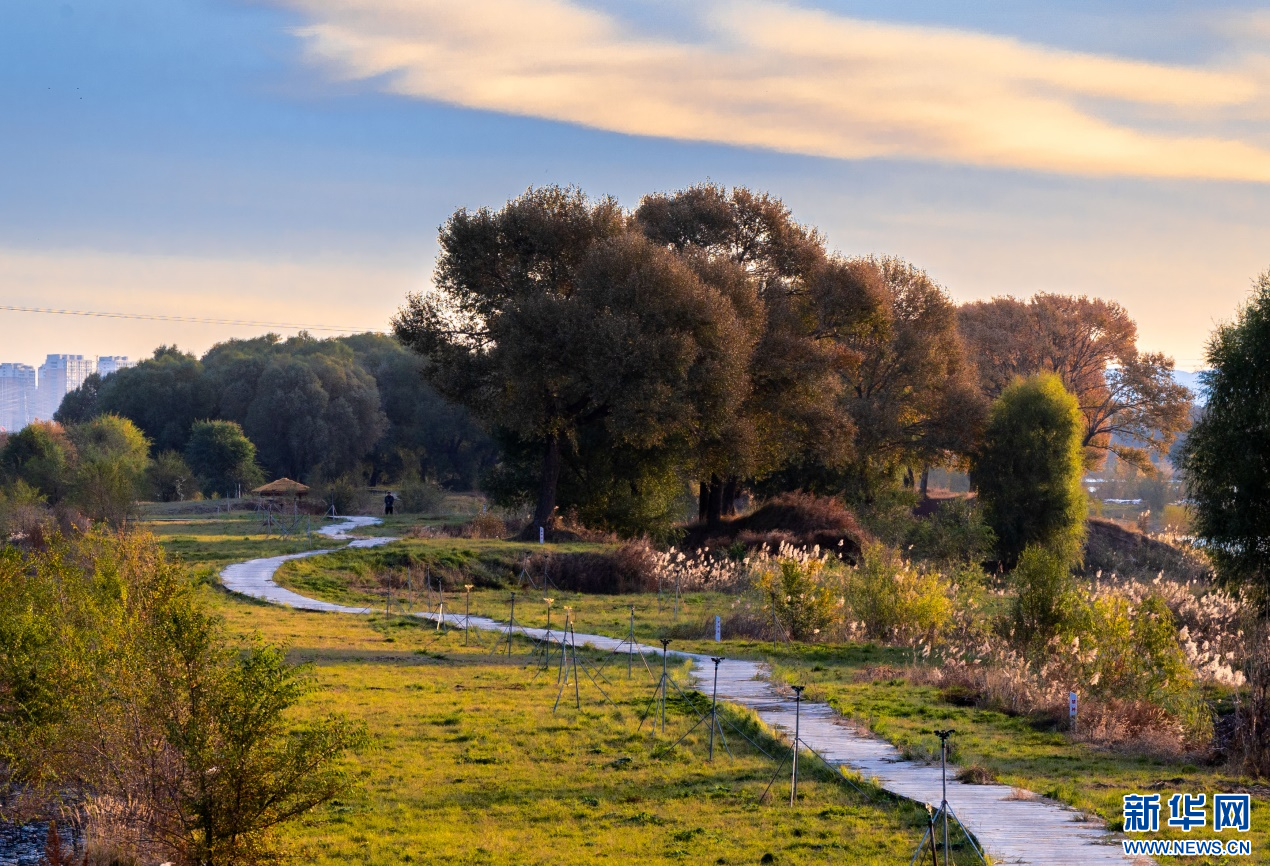 [신화망 베이징 10월29일] 늦가을의 네이멍구(內蒙古)자치구 후허하오터(呼和浩特)시 위취안(玉泉)구 다헤이강 교외공원이 강물에 비친 붉은 노을, 가을바람에 춤추는 새들이 어우러져 매혹적인 가을 풍경을 연출하고 있다.