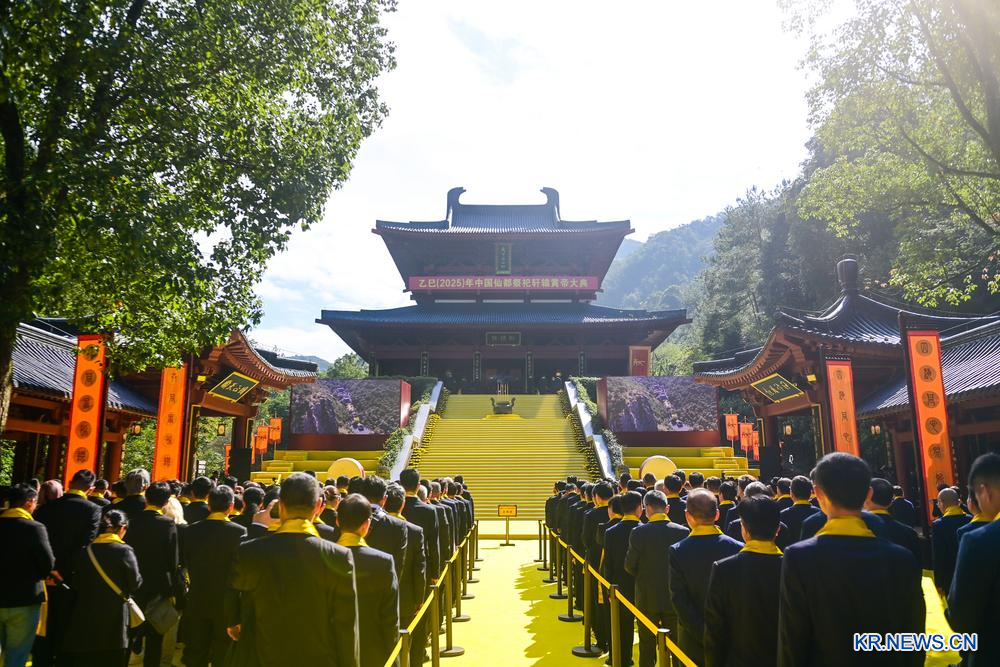 [신화망 리수이 10월30일] 을사년(2025) 중국 선도(仙都)제사 헌원(軒轅) 황제(黄帝) 대전이 29일 저장(浙江)성 리수이(麗水)시 진윈(縉雲)현 선도 황제 사우(祠宇)에서 거행됐다.