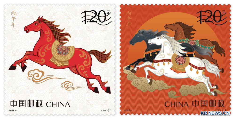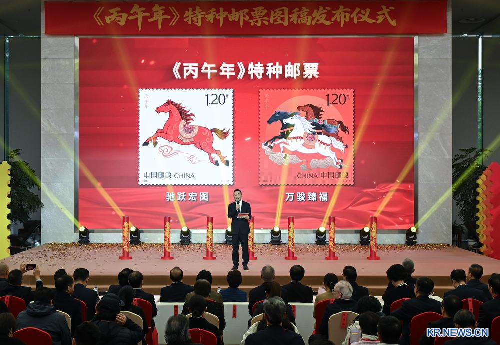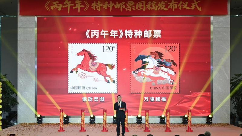 중국우정그룹이 이날 베이징에서 '병오년' 특별우표 도안 발표 행사를 열었다. 병오년 말띠 우표 도안은 처음으로 국민 공모를 통해 선정했다. 특별우표 세트는 내년 1월 5일 정식 발매될 예정이다. 2025.10.29