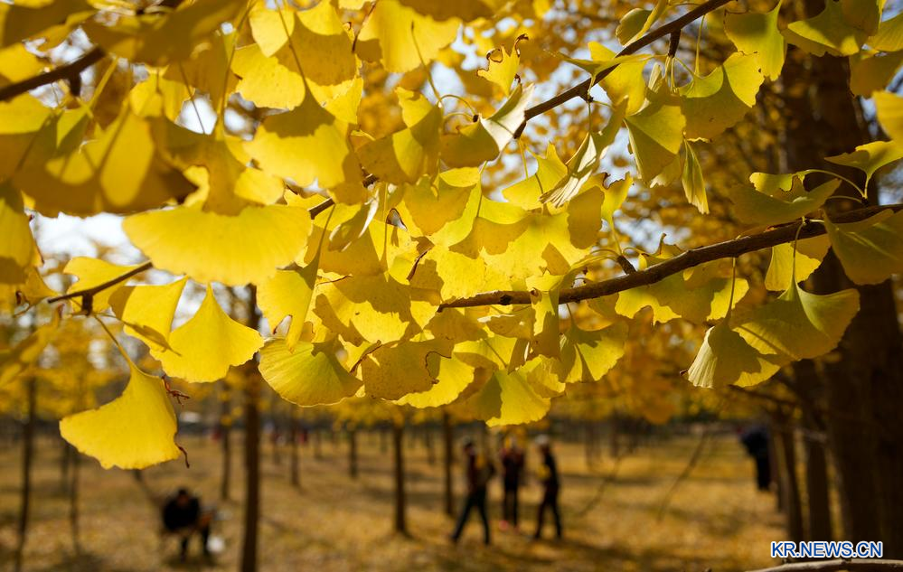 [신화망 지난 10월30일] 최근 기온이 내려가면서 산둥(山東)성 지난(濟南)시의 은행나무가 노랗게 물들자 가을 정취를 느끼려는 시민의 발길이 이어지고 있다.