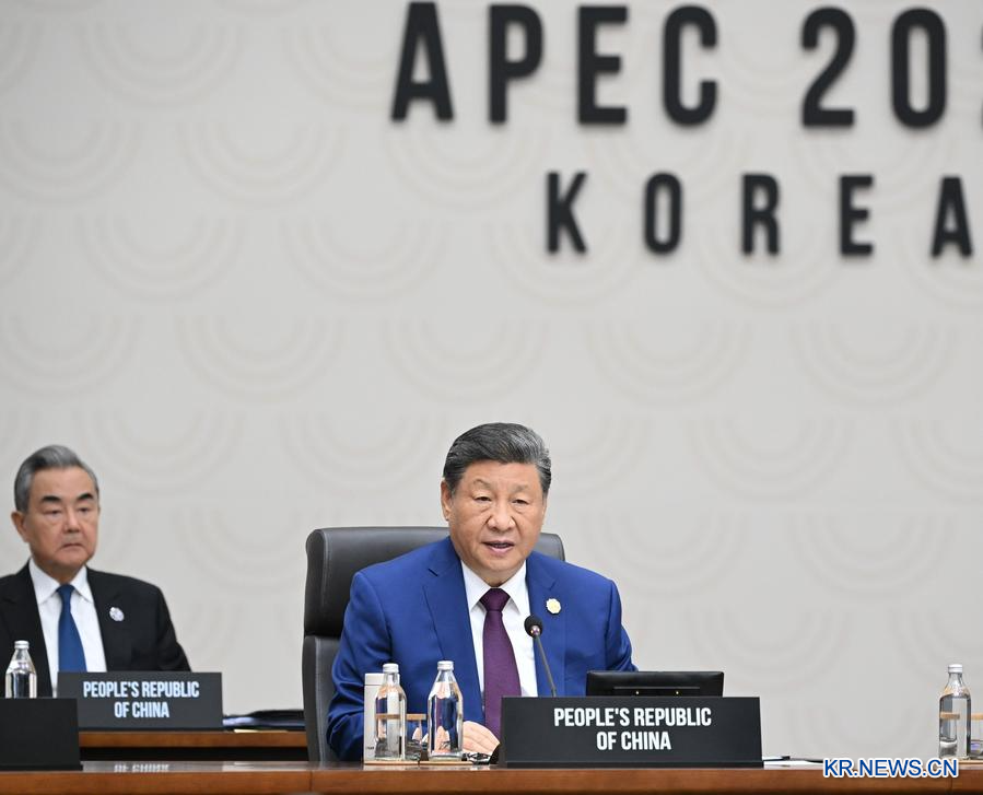 [신화망 베이징 11월2일] 시진핑(習近平) 중국 국가주석이 1일 오전 한국 경주에서 열린 '제32차 아시아태평양경제협력체(APEC) 경제체 지도자회의' 제2세션에 참석해 '지속가능한 아름다운 내일을 함께 열어가자'는 제목의 중요 연설을 발표했다.