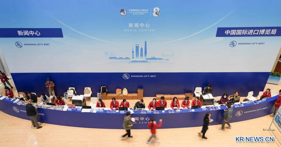 [신화망 상하이 11월5일] '제8회 중국국제수입박람회(CIIE)'가 5~10일 상하이에서 열린다. CIIE의 주요 개최 장소인 국가컨벤션센터(상하이) 현장을 4일 카메라에 담았다.