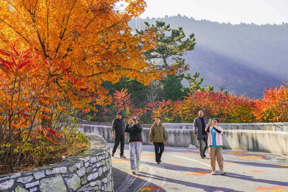 (베이징=신화통신) 4일 허베이(河北)성 쭌화(遵化)시 난산(南山) 창러구(常樂谷) 관광지에서 관광객들이 풍경을 감상하며 사진을 찍고 있다.