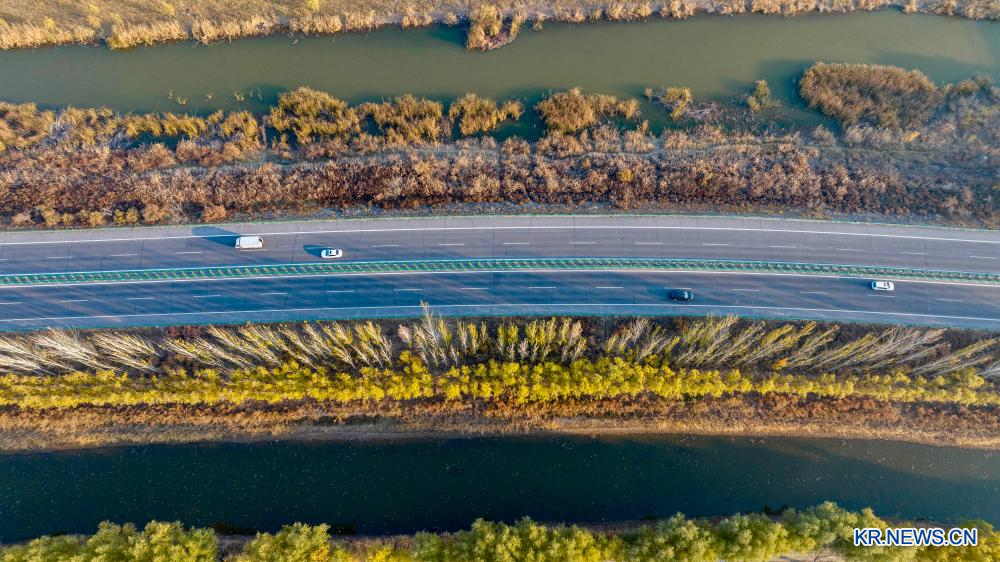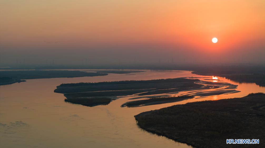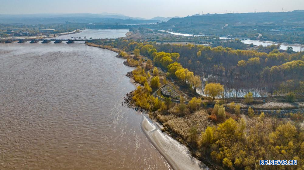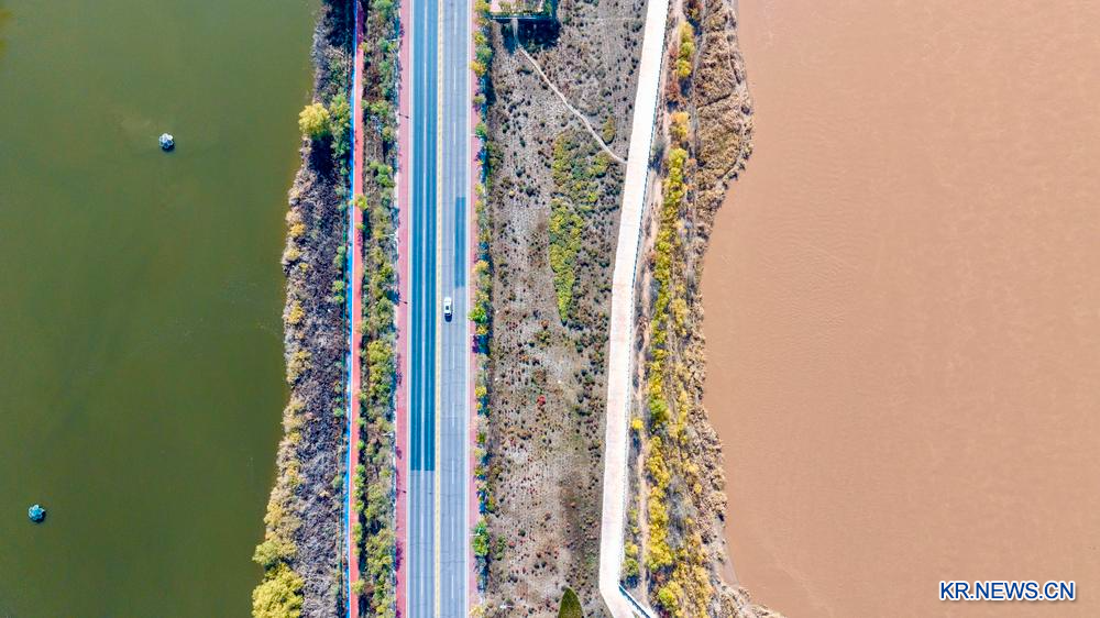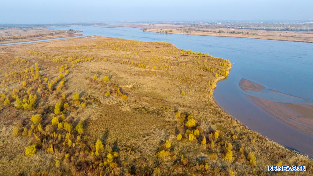 황허 닝샤 구간의 양안이 가을빛으로 물들었다. 닝샤는 최근 몇 년간 황허 유역의 생태계 보호에 힘쓰며 환경 개선을 위한 노력을 계속하고 있다.