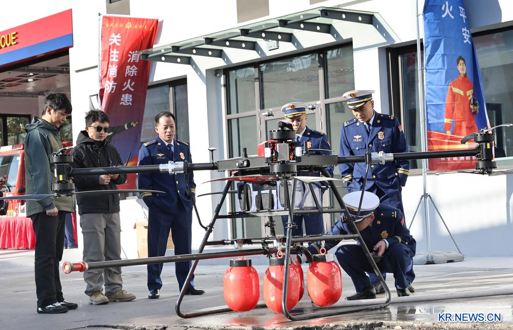[신화망 상하이 11월19일] 중국 소방 홍보의 달 행사가 18일 상하이시 창닝(長寧)구에서 열렸다. 소방 안전 테마 버스, 소방 드론 등 새로운 소방 구조 장비가 행사 현장에 등장했다.