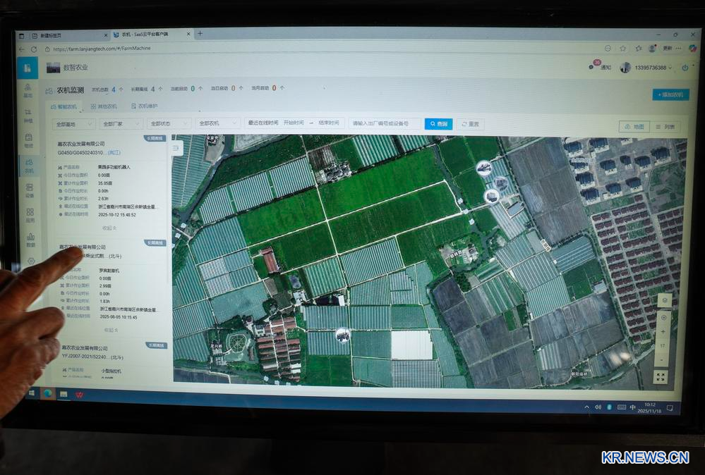 18일 저장(浙江)성 자싱(嘉興)시 난후(南湖)구에 위치한 한 농업발전회사의 디지털 시스템.
