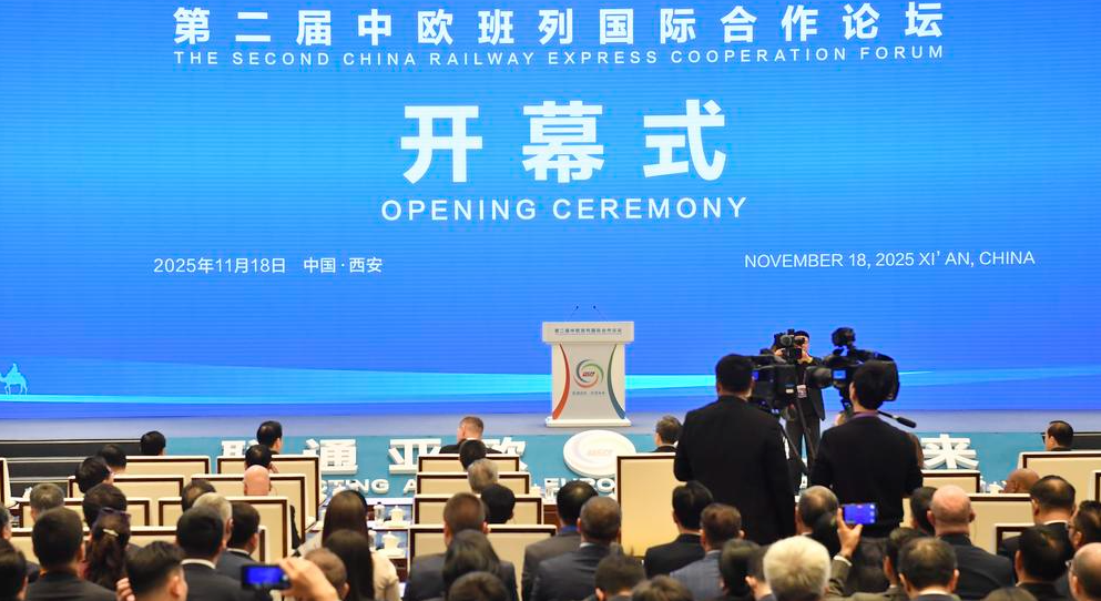 이날 '제2회 중국-유럽 화물열차 국제협력포럼' 개막식 현장. 2025.11.18