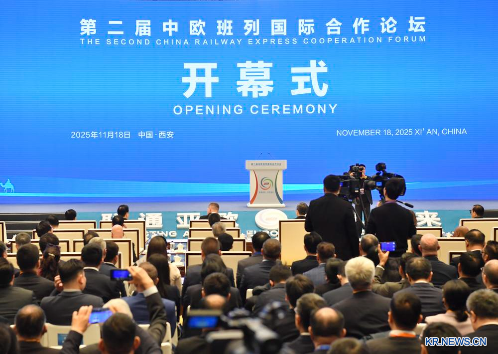[신화망 시안 11월19일] '제2회 중국-유럽 화물열차 국제협력포럼'이 18일 산시(陝西)성 시안(西安)에서 열렸다. 이번 포럼은 '아시아-유럽 연결과 미래 공유'라는 주제로 진행됐다.