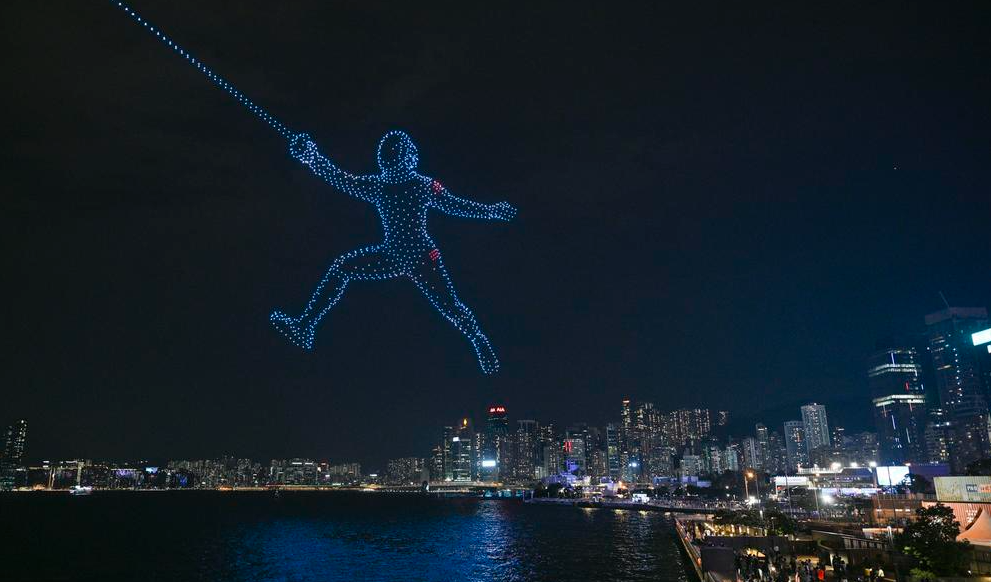 [신화망 홍콩 11월19일] '스포츠 파워 홍콩을 빛내다'를 주제로 한 대형 드론쇼가 18일 홍콩 빅토리아항에서 펼쳐졌다.