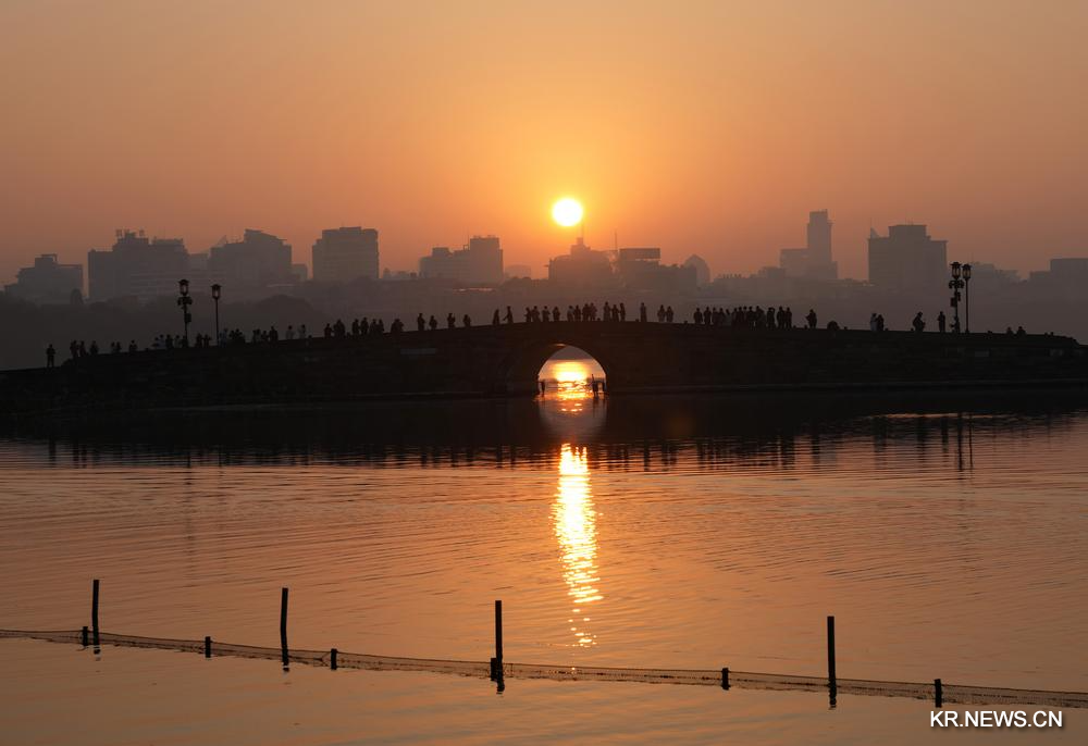 [신화망 항저우 11월24일] 최근 저장(浙江)성 항저우(杭州)시에 맑은 날씨가 이어지면서 아침햇살 속 시후(西湖)의 겨울 풍경을 감상하려는 관광객들의 발길이 이어지고 있다.