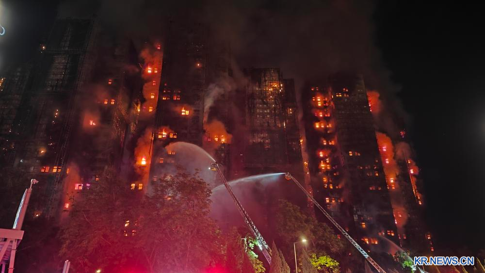 [신화망 홍콩 11월27일] 중국 홍콩 특별행정구(특구) 소방처는 합동 기자회견에서 26일 타이포(大埔)구역 웡푹코트(宏福苑)에서 발생한 화재 사고에서 44명이 사망하고 다수의 부상자가 발생했다고 발표했다.