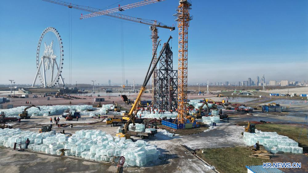[신화망 하얼빈 11월27일] 25일 20만㎥의 저장 얼음이 현장에 도착하면서 '제27회 하얼빈(哈爾濱) 빙설대세계' 얼음 건물 축조가 본격 시작됐다. 이번 축제 규모는 120만㎡로 역대 최대다.