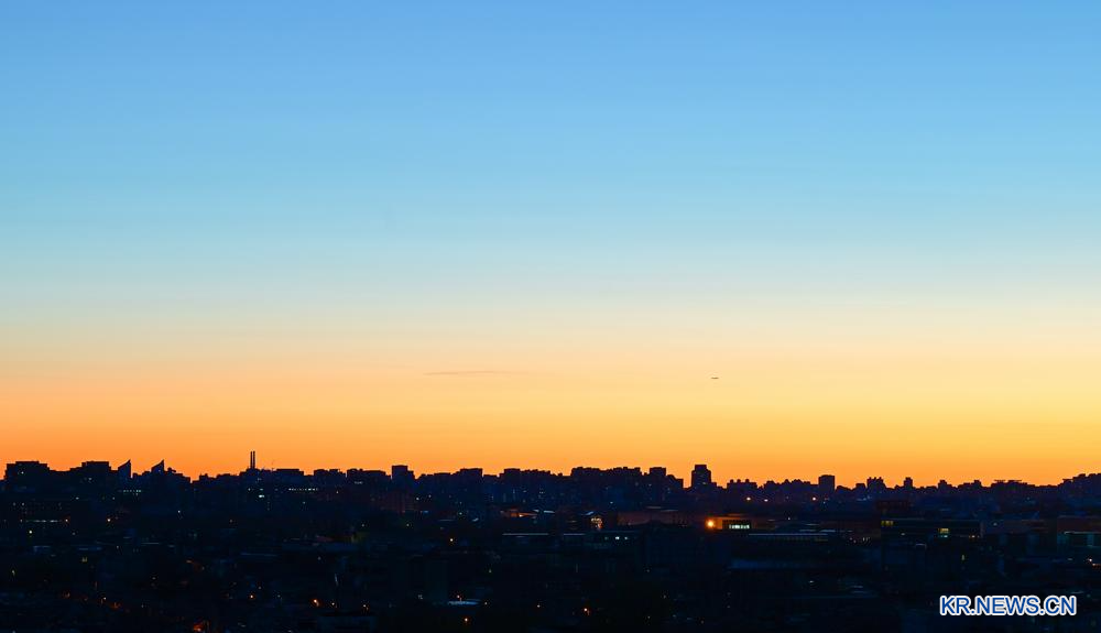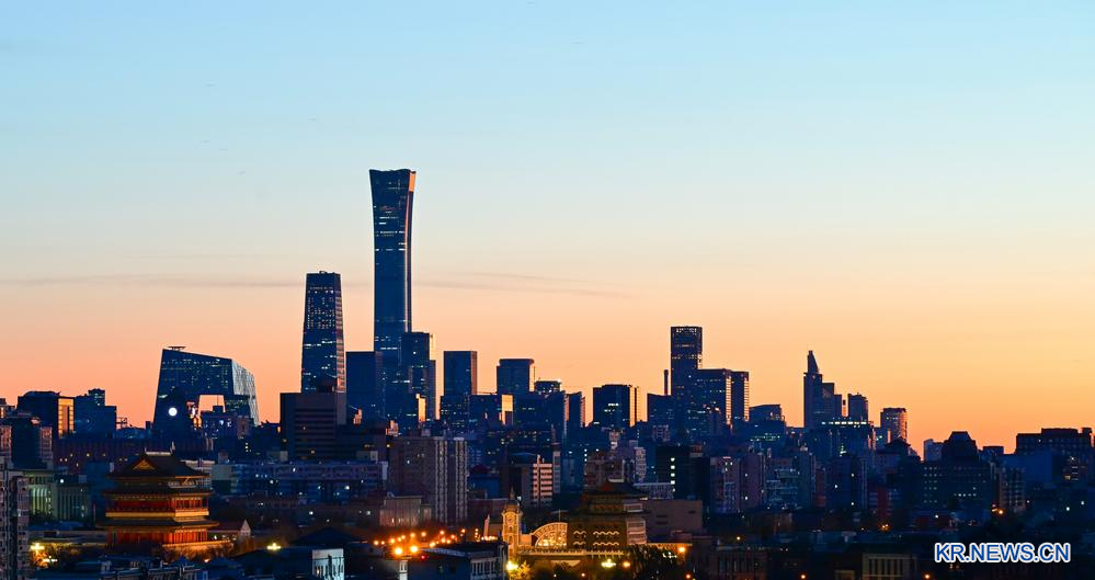 [신화망 베이징 11월27일] 27일 베이징은 시야가 탁 트인 청명한 하늘을 맞았다. 여명 속에서 도시의 스카이라인을 따라 서서히 황금빛이 번지며 고요한 입체감을 드러냈다.