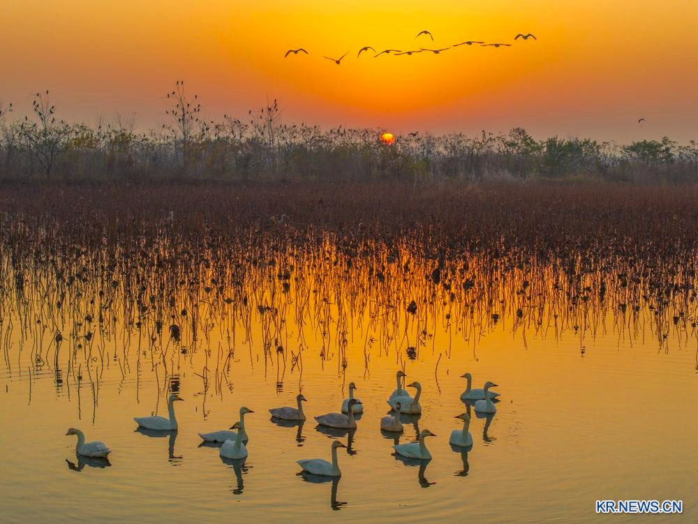 장쑤(江蘇)성 싱화(興化) 리샤허(里下河) 국가습지공원에서 서식하고 있는 새들을 지난달 30일 드론으로 담았다.