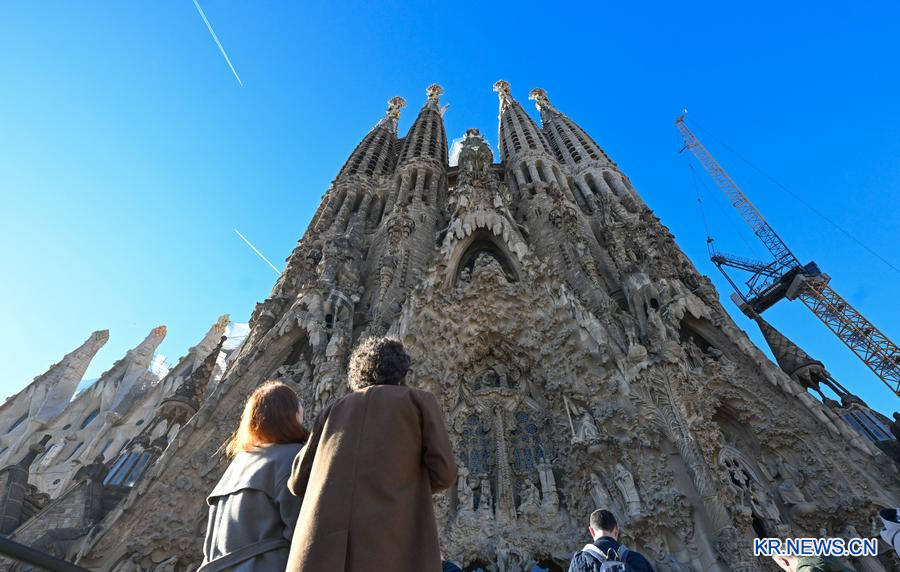 지난 1일 스페인 바르셀로나의 사그라다 파밀리아 대성당을 방문한 관광객들. (사진/신화통신)
