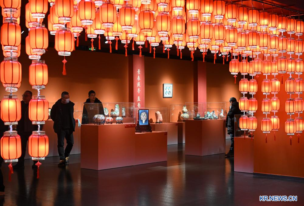 [신화망 베이징 12월18일] 15일 관광객이 무형문화유산 경태람을 살펴보고 있다.