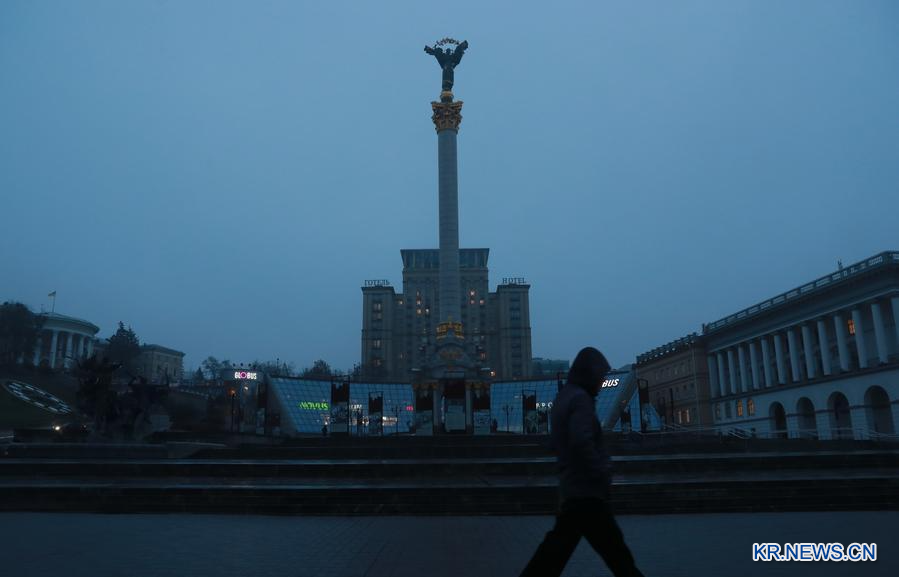 지난달 20일 주요 거리의 조명 시설에 대규모 정전이 발생한 우크라이나 수도 키예프에서 독립광장을 지나는 행인.