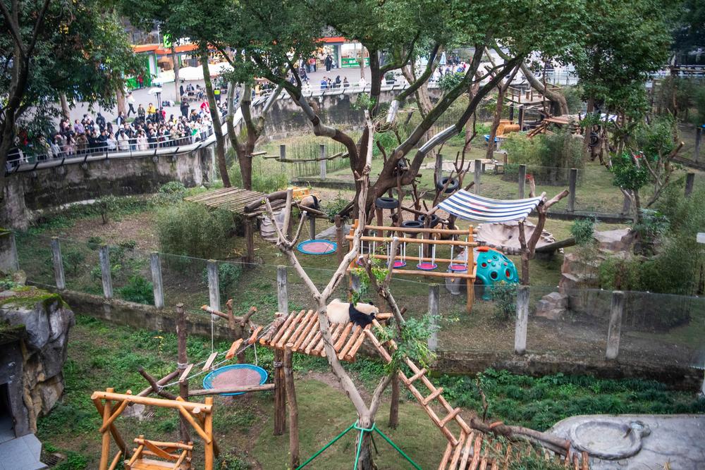 (중국 충칭=신화통신) 22일 충칭(重慶)동물원 자이언트판다관 하부 전시관이 시설 개조를 마치고 자이언트판다의 정식 입주를 맞이했다.