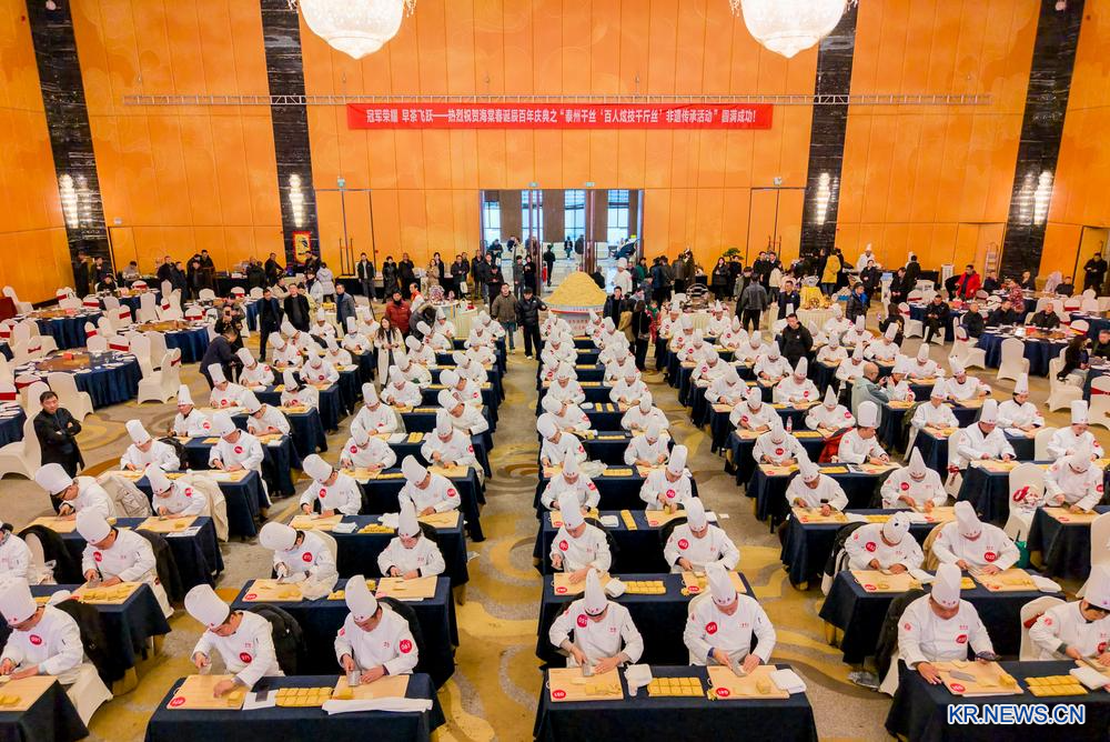 23일 타이저우(泰州) 짜오차(早茶) 무형문화유산 전승 행사에 참가한 셰프들이 현장에서 간쓰(乾絲·두부채)를 만들고 있다.
