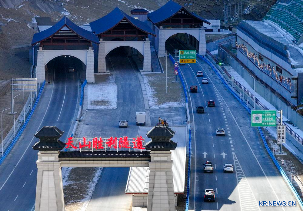 [신화망 허징 12월27일] 26일 오전, 세계 최장 고속도로 터널인 신장(新疆)위구르자치구 톈산성리(天山勝利) 터널이 개통됐다. 이로써 우루무치(烏魯木齊)~위리(尉犁) G0711 고속도로 전 구간이 운영에 들어갔다.