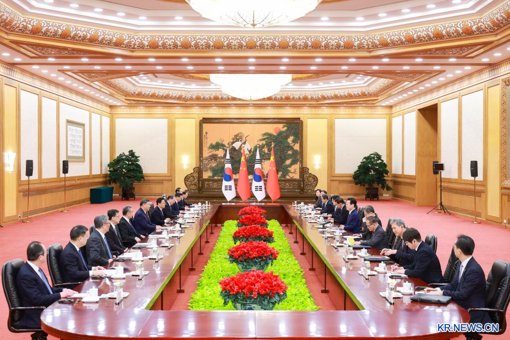 시진핑(習近平) 중국 국가주석이 5일 오후 베이징 인민대회당에서 중국을 국빈 방문한 이재명 한국 대통령과 회담을 진행했다.[촬영/신화사 기자 셰환츠(謝環馳)]pagebreak