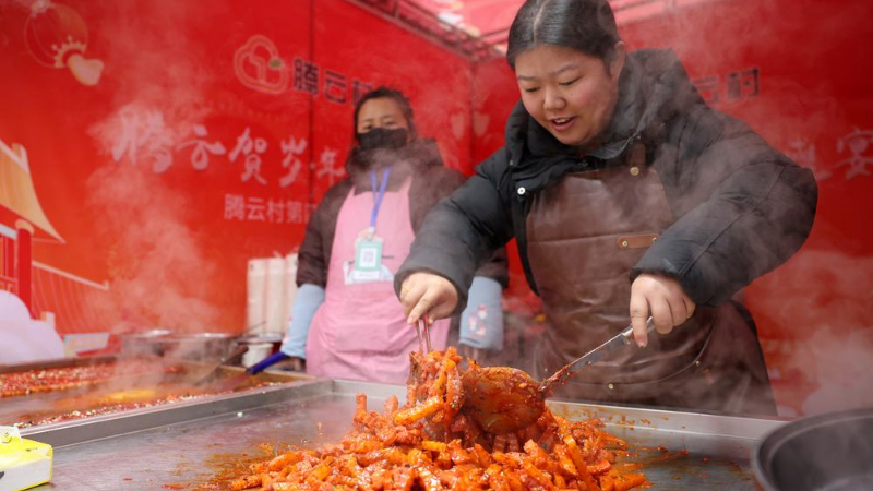 [신화망 딩시 1월21일] 19일 간쑤(甘肅)성 딩시(定西)시 안딩(安定)구에서 춘절맞이 용품 플리마켓이 열렸다. 개장 첫날에는 농특산물 판매와 지역 특색 음식, 친창(秦腔) 공연, 무형문화유산 체험 등이 마련돼 수많은 시민이 플리마켓을 찾아 명절 분위기를 만끽했다.