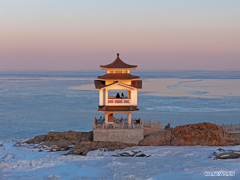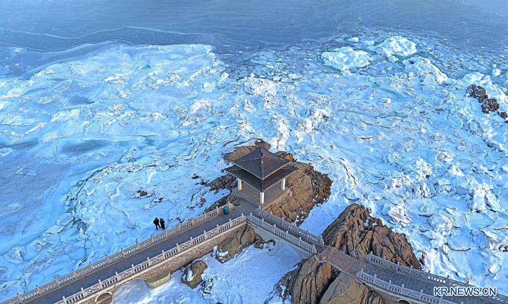 계속되는 추운 날씨로 인해 랴오닝(遼寧)성 후루다오(葫蘆島)시 인근 해역에 바닷물이 어는 해빙 현상이 나타났다.