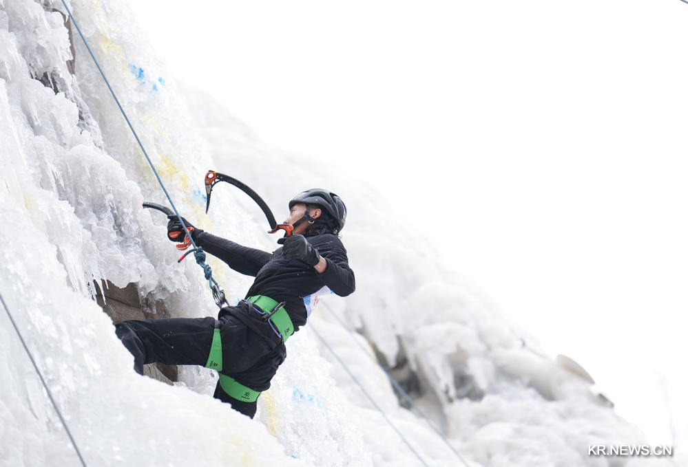 [신화망 시닝 1월26일] 25일 칭하이(青海)성 '제4회 빙설운동회 및 근로자 빙설운동회 빙벽 등반대회'가 25일 시닝(西寧)시 다헤이거우(大黑溝) 관광지에서 열렸다. 이번 대회에는 수십 명의 각 업종 빙벽 등반 애호가가 참가했다.