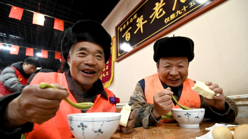 이날 싼장둥족자치현 야린(牙林)촌의 둥족 주민들이 유차를 마시며 라바제를 즐기고 있다. 2026.1.26
