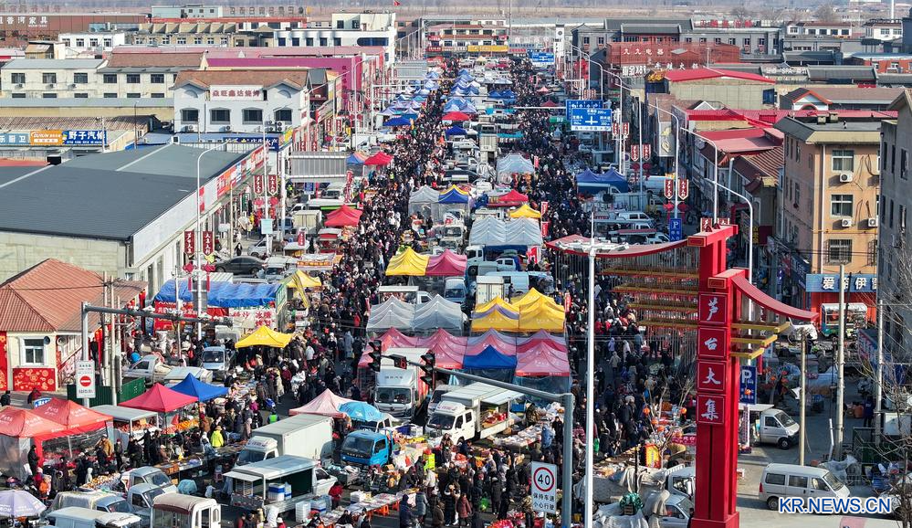 [신화망 중국 톈진 1월27일] 26일 루타이(蘆臺) 장터가 성황리에 열려 현장에는 무료 죽 제공, '복(福)'자 선물하기, 요리 대회 등 새해 분위기와 농촌 특색을 담은 민속 행사가 마련됐다. 루타이 장터는 톈진(天津)시 닝허(寧河)구에서 오랜 역사를 자랑하는 전통장터로 음력으로 3일과 8일마다 열린다.