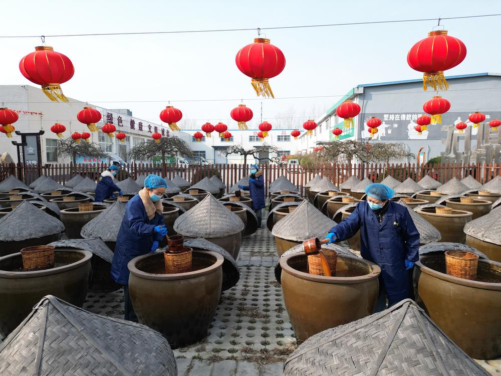 [신화망 중국 지난 1월30일] 산둥(山東)성 텅저우(滕州)시의 전통 간장 양조장에서 생산된 간장은 중국 각지로 배송돼 녠예판(年夜飯·섣달그믐날 함께 모여 먹는 식사)에 풍미를 더해준다.