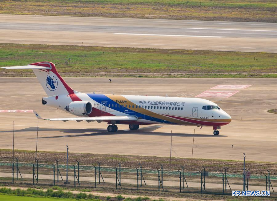 지난해 9월 5일 C909 비행기 병원이 상하이 푸둥(浦東)국제공항 활주로를 달리고 있다. (사진/신화통신)