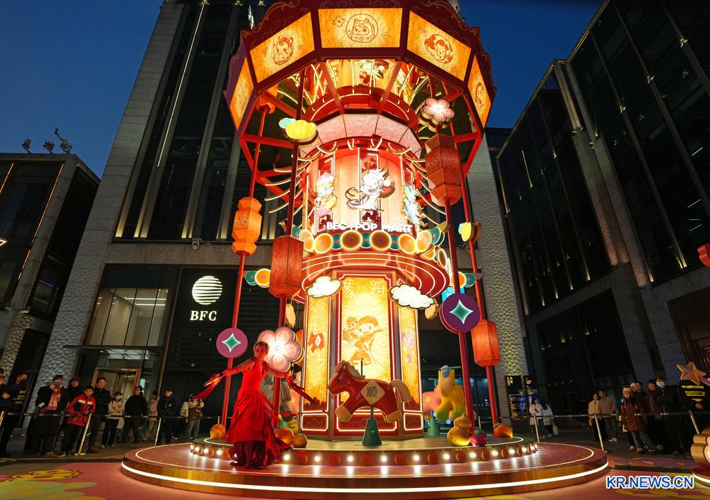 이날 저녁 궁등(宮燈∙경축일이나 축제 때 거는 등롱) 모양의 회전목마 조형물이 BFC 와이탄 금융센터 앞에서 불을 밝히며 신춘 유원회(遊園會)를 시작했다. 2026.2.2pagebreak