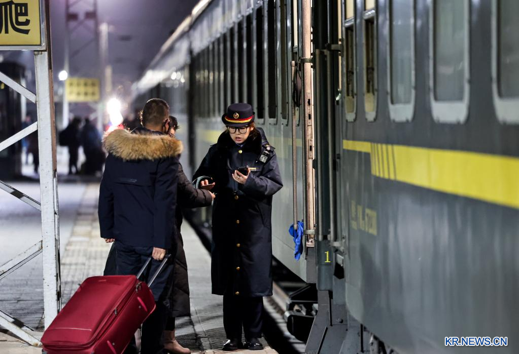 [신화망 베이징 2월 3일] 2일 하얼빈 기차역에서 승객들이 기차를 타기 위해 이동하고 있다.